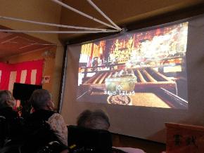 大画面に映る善光寺さんを見るだけでもご利益がありそうです。元お寺の住職のご利用者が木魚を叩いてお経を唱えて下さいました。